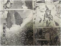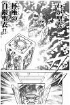 Shijima está na Sala do Mestre e reflete sobre o fato de Suikyo ter escolhido a Porta da Morte. Se ele tivesse escolhido a Porta da Velhice, instantaneamente se tornaria um homem velho e não poderia continuar em frente, se tivesse escolhido a Porta da Doença, teria uma infecção terrível e não continuaria em frente, se fosse na Porta da Vida, ficaria vagando eternamente pela Casa de Virgem em penitência. Portanto, sabendo de tudo isso e sem hesitação, Suikyo escolheu a Porta da Morte, preferindo morrer no local do que continuar vivendo sem alcançar o seu objetivo. Shijima entende que ele é um verdadeiro guerreiro. O Cavaleiro de Virgem começa a se questionar, então, se Suikyo é realmente um inimigo de Atena. Na eminência da morte, Suikyo vê uma luz. Ele acorda no Jardim das Árvores Sala Gêmeas. De repente, surge na sua frente a Armadura de Prata de Taça. Ele não entende porque ela está naquele local, mas percebe que foi salvo por Atena. Shijima também percebe que Atena, apesar de ser apenas um bebê, salvou Suikyo. O espectro tenta se olhar na água da vida, mas nada vê. Ele percebe então que não morrerá e Atena fez questão de salvá-lo. Ele decide seguir adiante, bebendo a água da vida. Neste instante, ele percebe que as pétalas das Árvores Sala Gêmeas percorrem dimensões e resolve mandar uma mensagem para Atena através delas. As pétalas chegam até Shijima, que está com Atena. O Cavaleiro de Virgem percebe que apenas duas pétalas conseguiram chegar. Nelas está escrito: Ju e San. Shijima não entende o que aquilo quer dizer, mas sente que o Santuário todo pode ser destruído!