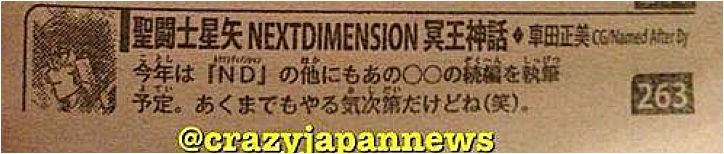 A revista Weekly Shonen Champion desta semana trouxe uma nota dizendo que Masami Kurumada demonstrou interesse em continuar um outro mangá seu, em paralelo ao Next Dimension. A revista mantém mistério sobre o nome do mangá, mas tudo indica que será o Otokozaka (mangá originalmente publicado em 1984).