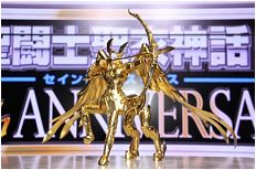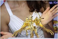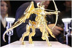 Conforme divulgamos anteriormente, nos próximos seis meses, teremos o World Sanctuary Tour, com a exibição dos novos bonecos Cloth Myth em 10 países. Para o evento, foi criado um boneco especial da Armadura de Sagitário em ouro puro, pesando 2kg, produzido pela joalheriaTanaka Kikinzoku. O boneco estará exposto apenas no Japão e tem o preço avaliado em 1 milhão e 200 mil reais, porém a peça não será comercializada (é apenas para exibição mesmo).